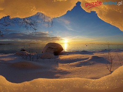 Puzzle Jaskinia, Zima, Słońce