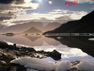 Puzzle Zima, Góry, Jezioro, Odbicie