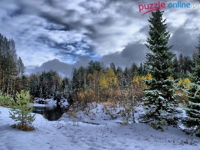 Puzzle Las, Zima, Chmury