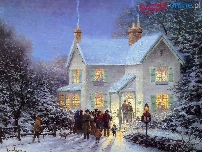 Puzzle Zima, Dom, Ludzie, Malarstwo