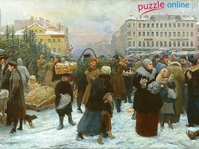 Puzzle Zima, Targowisko, Ludzie, Malarstwo