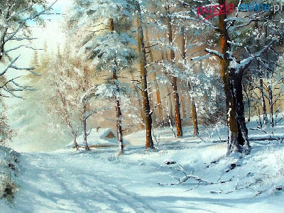 Zima, Droga, Marek Szczepaniak, Malarstwo, Las