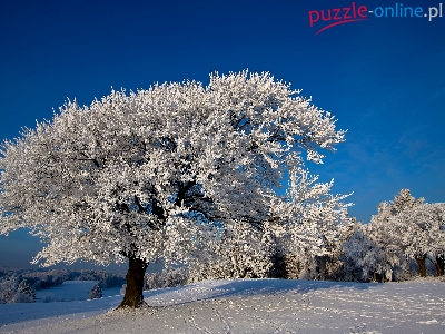 Puzzle Åšnieg, Zima, Drzewa