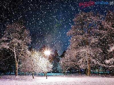 Puzzle Zima, Drzewa, Śnieg, Park