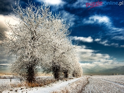 Puzzle Zima, Drzewa, Śnieg, Pole