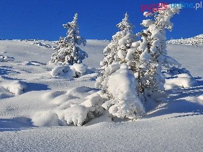 Puzzle Śnieg, Zima, Świerki
