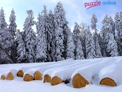 Puzzle Ośnieżone, Zima, Drzewa