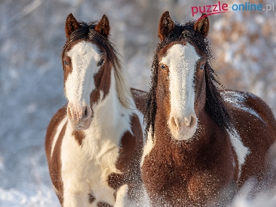 Dwa, American Paint Horse, Konie, Grafika AI, Zima