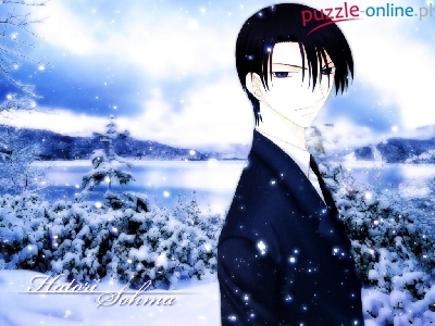zima, drzewa, Fruits Basket, postać, śnieg