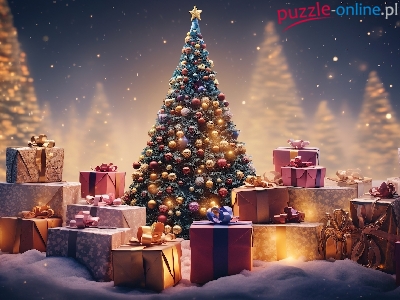 Boże Narodzenie, Choinka, Zima, Grafika, Prezenty