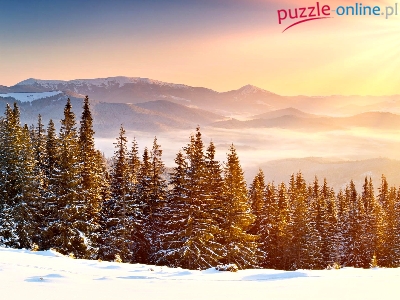 Puzzle Zima, Las, Śnieg, Promienie słońca