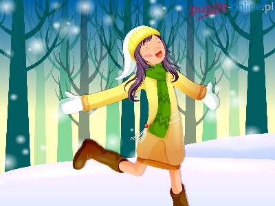 Puzzle Zima, Dziewczyna, Radość, Grafika