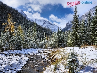 Puzzle Zima, Góry, Rzeka, Świerki
