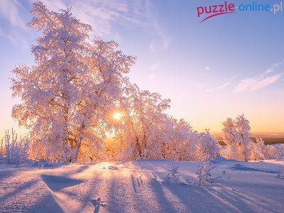 Ośnieżone, Śnieg, Drzewa, Zima, Promienie słońca