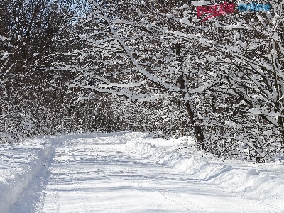 Zima, Droga, Drzewa, Słoneczny dzień