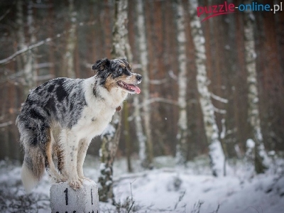 Puzzle Zima, Pies, Słupek, Sztuczka