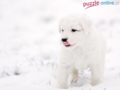 Puzzle Zima, Pies, Szczeniak, Śnieg