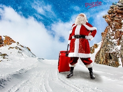 Zima, Skały, Mikołaj, Walizka, Droga