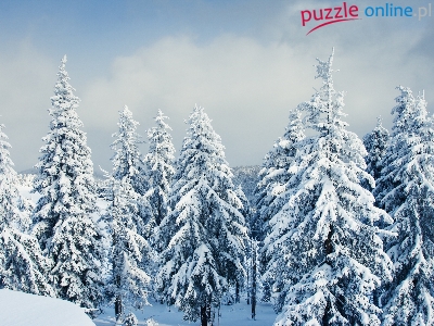Puzzle Świerki, Zima, Ośnieżone