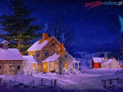 Puzzle Zabudowania, Zima, Noc