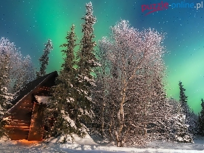 Puzzle Zima, Dom, Zorza polarna