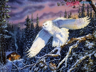 Zimowa, Terry Doughty, Biała, Sowa śnieżna, Sceneria