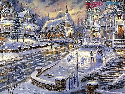 Puzzle Świąteczny, Widoczek, Zimowy, Miasto