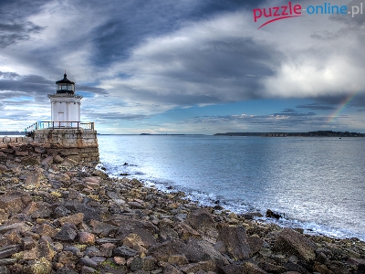 Kamienie, Stan Maine, Tęcza, Stany Zjednoczone, Latarnia morska Portland Breakwater Light, Morze