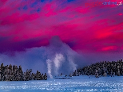 Puzzle Gejzery, Stany Zjednoczone, Park Narodowy Yellowstone, Zima