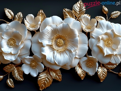 Białe, Złote, Kwiaty, Grafika, Listki