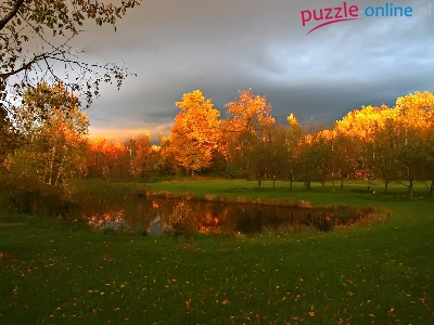Złote, Staw, Burzowe, Niebo, Drzewa