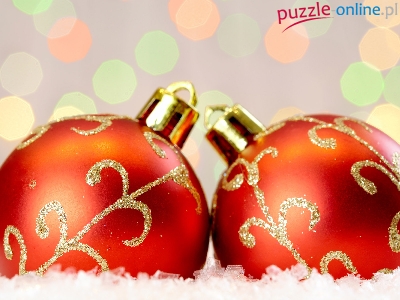Puzzle Złoty, Czerwone, Bombki, Wzorek