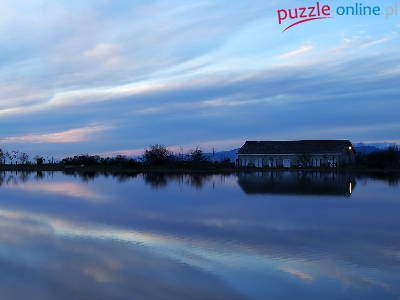 Puzzle Zmierzch, Dom, Jezioro, Odbicie