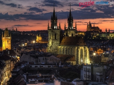 Puzzle Kościół Najświętszej Marii Panny przed Tynem, Czechy, Praga, Zmierzch