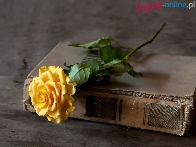 Puzzle Zniszczona, Żółta, Róża, Książka