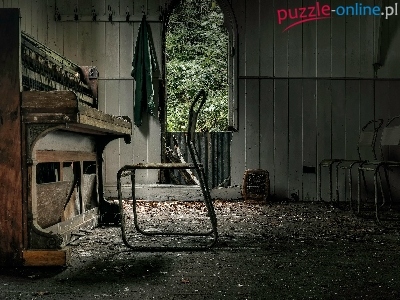 Zniszczone, Krzesła, Stare, Pianino, Wnętrze