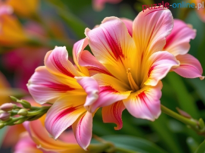 Puzzle Różowo-żółta, Kwiat, Frezja, Zbliżenie