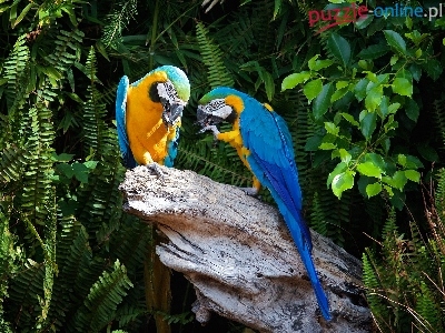 Niebiesko-żółte, Pień, Paprocie, Ary, Dwie, Papugi, Liście