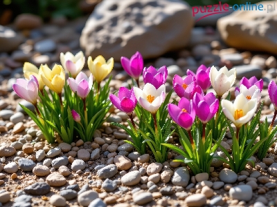 Białe, Żółte, Różowe, Kamienie, Krokusy