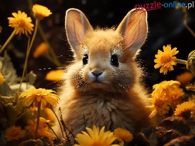 Królik, Żółte, Spojrzenie, Rośliny, Kwiaty