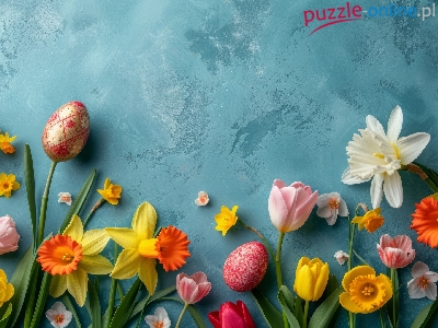 Wielkanoc, Żonkile, Pisanki, Kwiaty, Tulipany