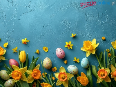 Wielkanoc, Żonkile, Pisanki, Tulipany, Żółte