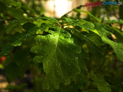 Puzzle Zroszone, Zielone, Liście, Deszczem